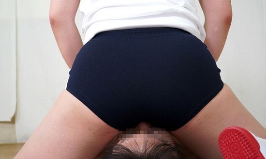 ブルマを触って揉んで舐めて好き放題に弄ぶ。